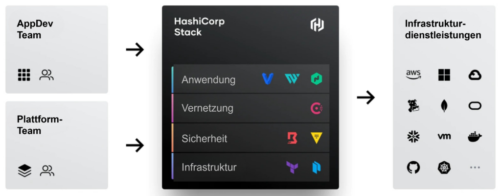 Tausende von Unternehmen verwenden HashiCorp, um die Cloud-Infrastruktur für ihre wichtigsten Anwendungen bereitzustellen, abzusichern, zu verbinden und auszuführen. Die HashiCorp-Plattform der Automatisierungssoftware wird von Platform-Teams auf der ganzen Welt verwendet, um die Entwicklungsgeschwindigkeit zu verbessern, Risiken zu reduzieren und Effizienz zu erhöhen.