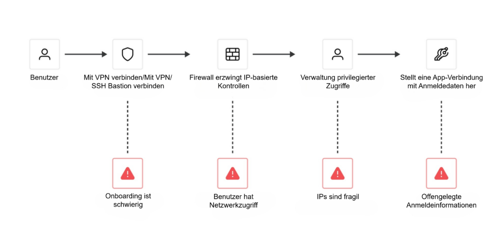 HashiCorp Boundary bietet eine moderne Lösung für die Verwaltung von Mensch-zu-Maschine-Zugriffen und reduziert Risiken im Zusammenhang mit der Ausbreitung von Anmeldeinformationen und dem manuellen Wartungsaufwand, der bei herkömmlichen Lösungen wie SSH-Schlüsseln und VPN-Anmeldeinformationen erforderlich ist.