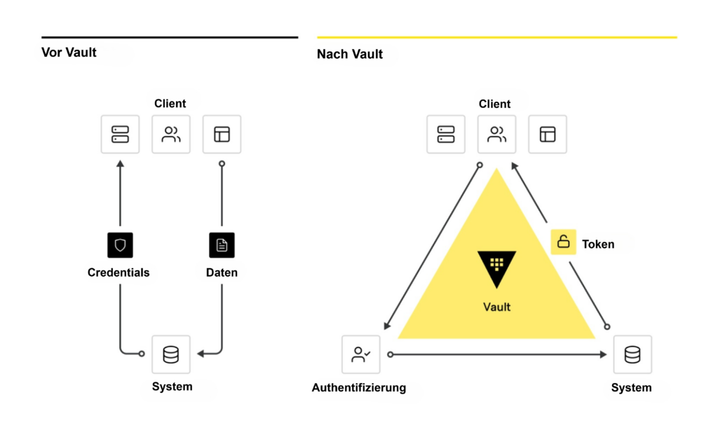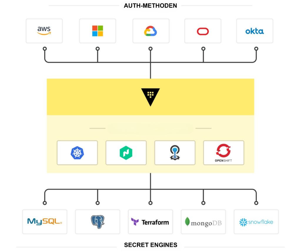 HashiCorp Vault ist ein Tool zur Verwaltung von Secrets, das sich in identitätsbasierte Zugriffssysteme wie Azure Active Directory integrieren lässt, um sich zu authentifizieren und auf Services und Ressourcen zuzugreifen.