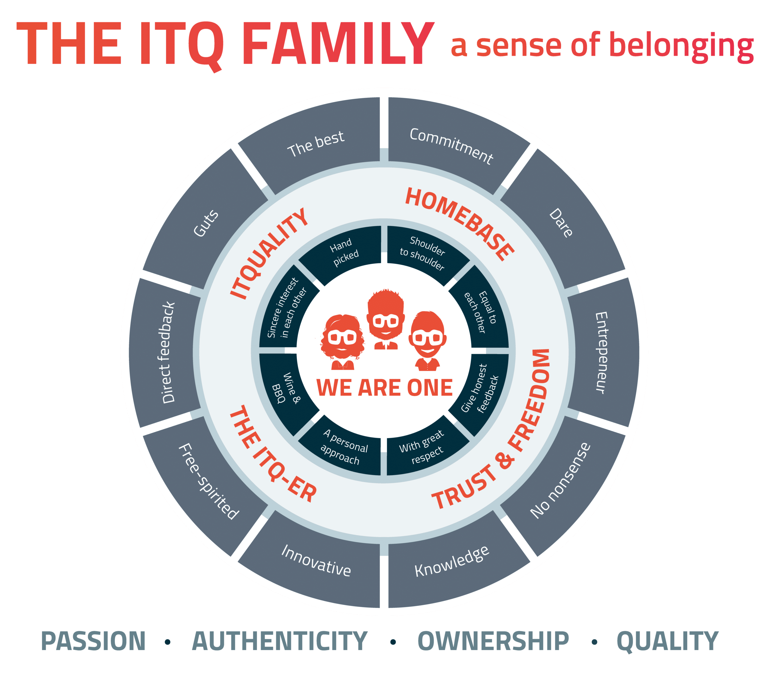 In this story, we take you through what ‘We are one’ means to us, what the inner ring stands for, how the other themes Trust & Freedom, Home base, ITQuality, the ITQer strengthen our cooperation both internally and externally.