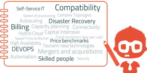 No doubt everybody recognizes the extreme internal market competition service providers are facing right now. On one hand they have to battle with giants like Amazon, Microsoft, Google and VMware and on the other hand new challengers, using disruptive new technology, are already looming on the horizon. Aside from these huge challenges, service providers also have to deal with day to day and operational challenges to stay competitive. The graphic below is an unstructured collection of keywords we have picked up while working closely with numerous service providers over a long period of time. Some examples: