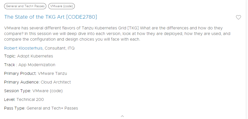 I would also like to highlight the Session by Scott Rosenberg, Adding Custom Logic to TKG Cluster Deployment [CODE2749]