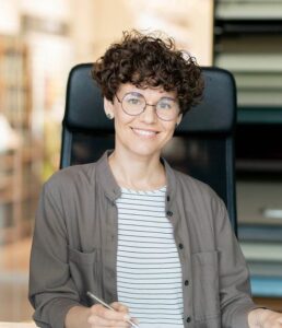 Thuis begint de werkdag voor Geertje achter haar laptop. In de middag heeft ze een interessante bespreking over VR en besluit ze de dag met meerdere overleggen.