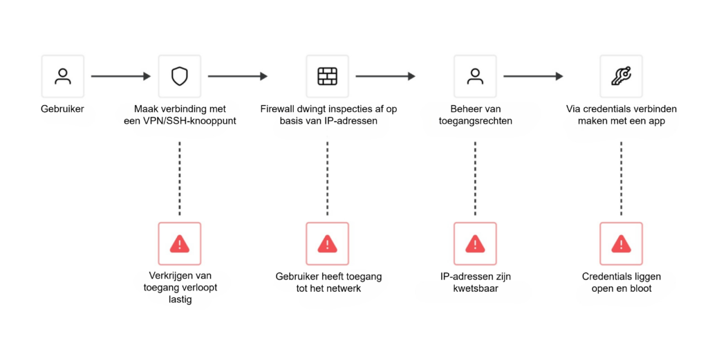 HashiCorp Boundary biedt een moderne oplossing voor het beheren van de toegang van mens tot machine en het verminderen van risico's. Zulke risico’s zijn vaak het gevolg van een wildgroei aan referenties. Boundary vermindert ook de noodzaak van handmatig onderhoud, zoals gekend van traditionele oplossingen zoals SSH-sleutels en VPN-referenties.