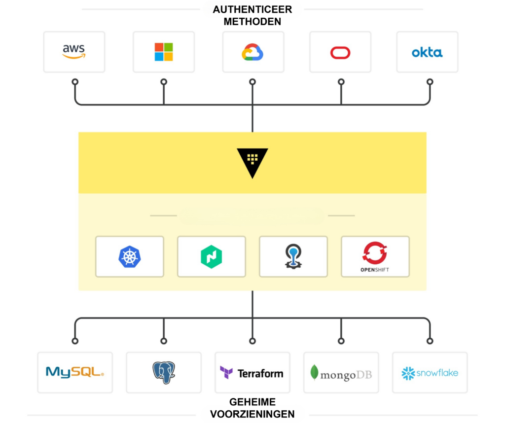 HashiCorp Vault is een beheerhulpmiddel voor geheimen dat integreert met op identiteit gebaseerde toegangssystemen zoals Azure Active Directory om diensten en bronnen te authentiseren en er toegang toe te krijgen.