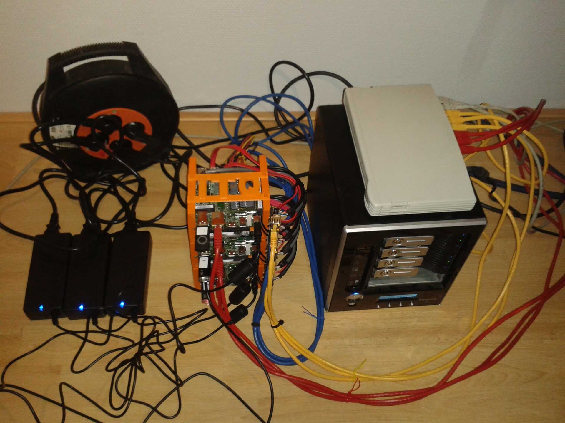 Now we rerun the test with 2 VMs which run on 2 separate servers. This is shown in the second spike. As you can see the performance is doubled! But the latency stays close to 0! The same goes for the third VM running on yet another node, 52000 more IOPS are added, latency stays low. The total amount of IOPS achieved in this test was 154.659 IOPS while the latency stays close to 0! Which is incredible for a bunch of 10x10cm boards with dualcore CPU’s and an 8 years old NAS if you ask me. For the record, during our live demo at NLVMUG we did even a little more IOPS, around 158000.