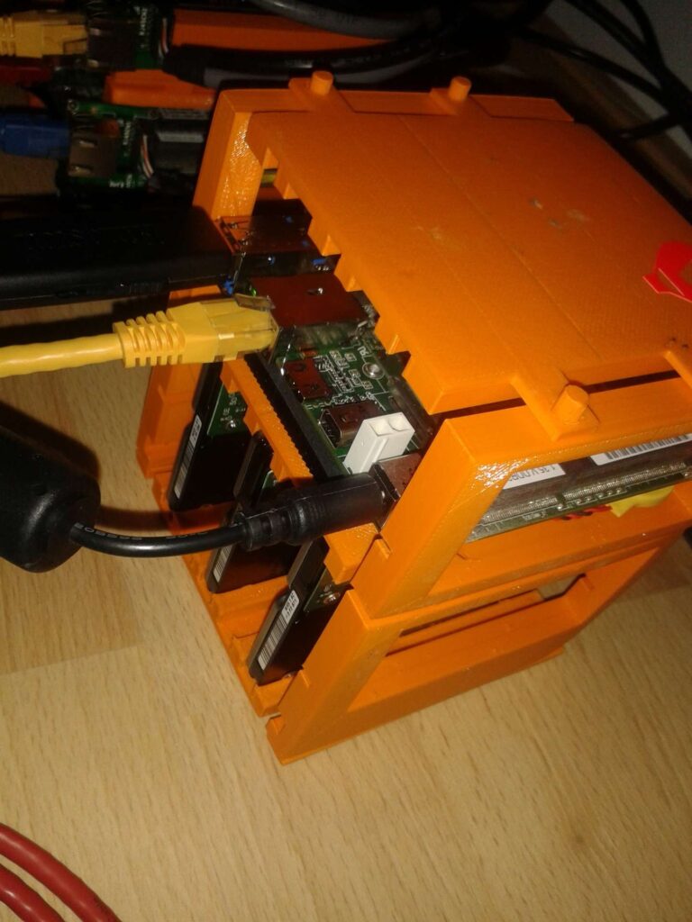 If you want to build your own then consider using a board with more onboard SATA ports. But if you really want to give it a try, here are the 3D models I created. Warning: Some dremel action might be needed to make everything fit.