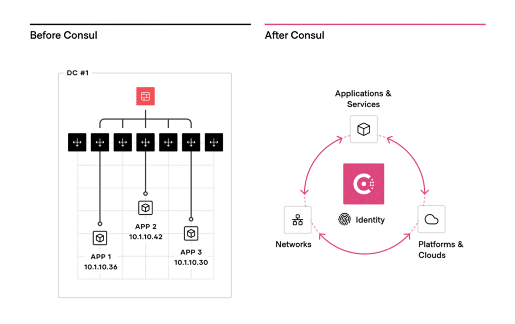 Traditionally, networking required manual tasks between hosts and static IP addresses. HashiCorp Consul offers a modern, automated, and service-oriented approach for cloud architectures and platform teams.
