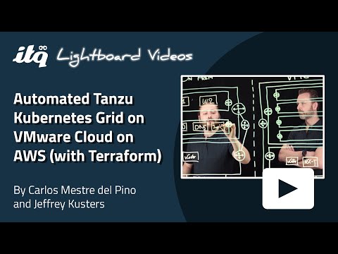 Lightboard video - 'Automated Tanzu Kubernetes Grid on VMware Cloud on AWS (with Terraform)' by Carlos Mestre del Pino, Virtualization Consultant at ITQ and Jeffrey Kusters, Field CTO at ITQ.
